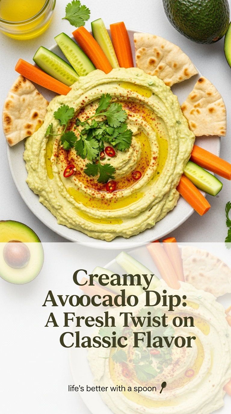 This creamy avocado hummus dip shines brilliantly when paired with a variety of colorful accompaniments and plating styles. Serve it surrounded by crunchy vegetable crudités-think vibrant carrot sticks, crisp cucumber slices, and sweet red bell peppers-for a fresh, healthful snack.Artisan crackers or warm pita wedges create irresistible vehicles for scooping and make the presentation communal and inviting.