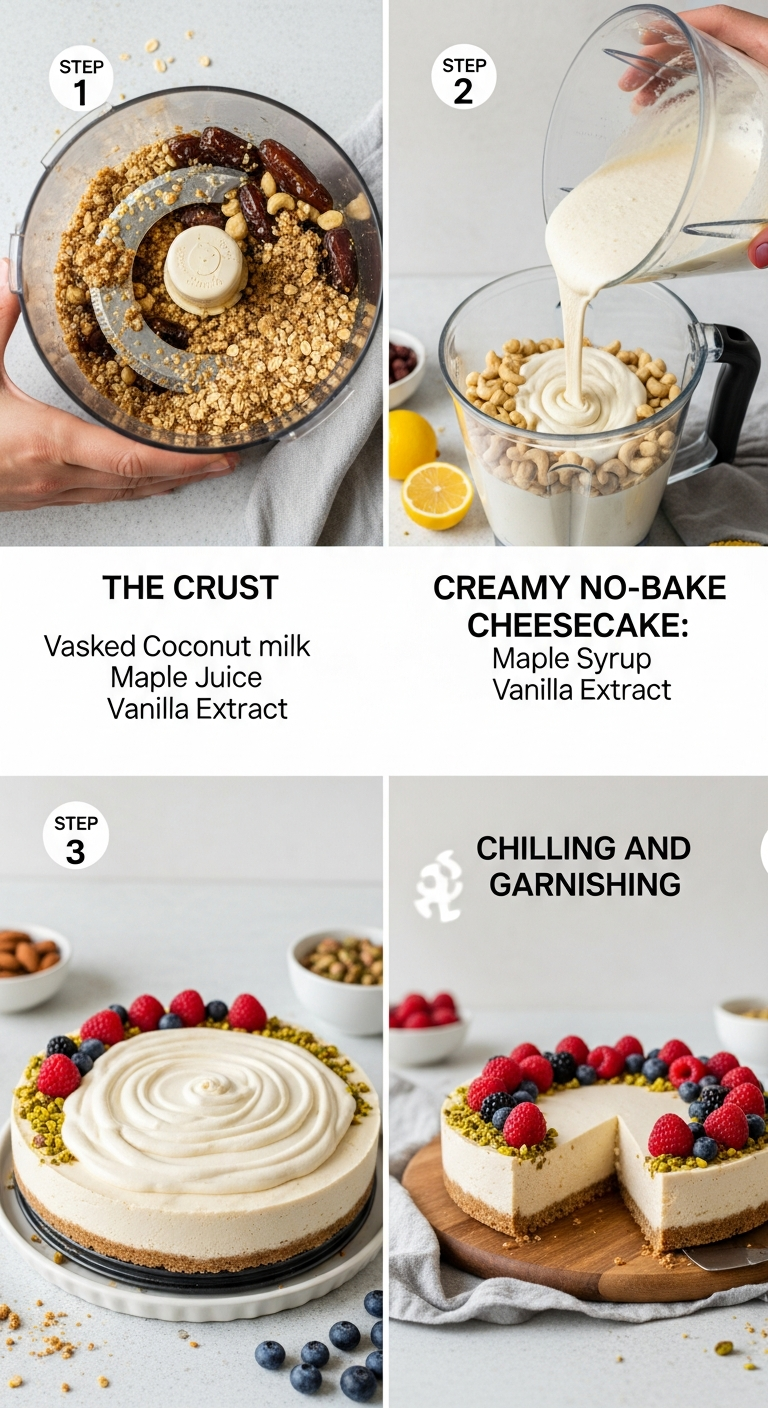 - Blend the filling: In a high-speed blender, add soaked cashews, coconut cream, maple syrup, lemon juice, melted coconut oil, vanilla extract, and sea salt. Blend until completely smooth and creamy, scraping down sides as needed. The consistency should be luscious and thick.