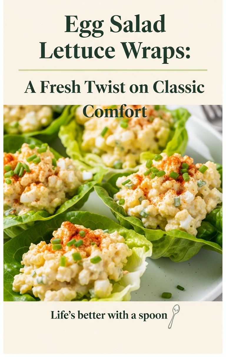 - Assemble the wraps: Spoon a generous amount of the egg salad into the center of each leaf. Fold sides inward and roll gently, or leave open-faced for a casual bite.